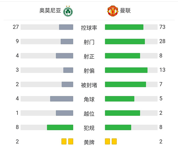 全场比赛结束,曼联客场3-2逆转奥莫尼亚。