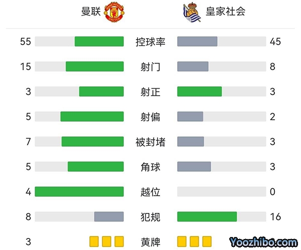 全场比赛结束,曼联主场0-1不敌皇家社会。