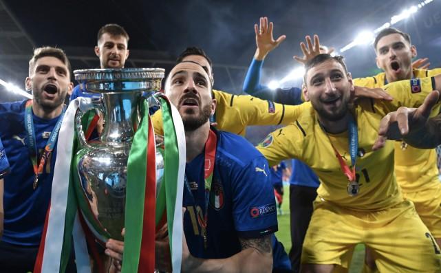 不仅在发布会喝可乐影射俱乐部队友C罗。赛后,博努奇在接受采访时还不忘嘲讽赛前高调的英格兰球迷:“赢得欧洲杯是独一无二的感觉,看到58000人在我们捧起冠军奖杯之后离开球场也是独一无二的,如今冠军要回罗马了。他们原本认为冠军会留在伦敦,但很遗憾,意大利再次给对手上了一课。”