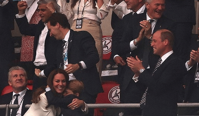 这场比赛前后看台上的乔治小王子都非常的吸引人关注,他是威廉王子和凯特王妃的儿子,比赛期间,这一家三口也来到现场,乔治小王子和威廉王子穿着父子西装。比赛初期,开场不到2分钟,英格兰队第一次射门的机会,卢克肖就破门得分,镜头很快给到了看台上的乔治小王子,只见他和父母拥抱,在看台上开心的大笑,就像是一个大人一样。