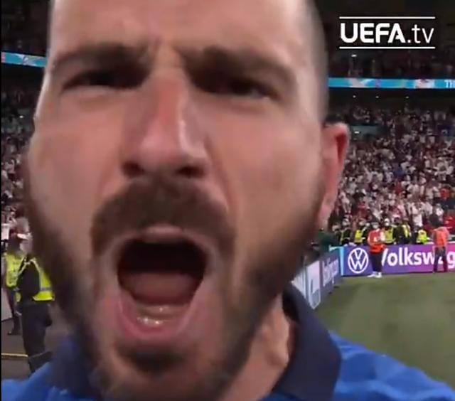 24直播网讯 今天凌晨,意大利在欧洲杯决赛中击败了英格兰,赛后博努奇对着镜头嘲讽英格兰球迷。