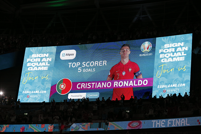 C罗以 5 粒进球获得2020欧洲杯支付宝得分王