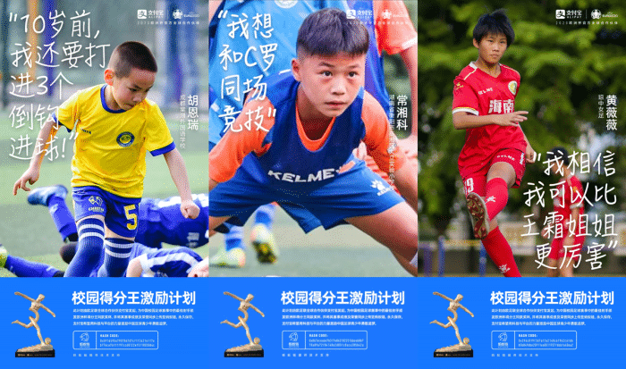 与此同时,支付宝推出了“校园得分王”激励计划,本届欧洲杯得分王奖杯同款奖杯还将颁发给在中国校园足球赛事中表现优异的的青少年“得分王”,他们的成绩和荣耀也将会和欧洲杯得分王C罗一起保存于蚂蚁链,用欧洲杯和得分王的体育精神激励更多中国青少年勇敢追逐足球梦。此前支付宝已经官方公布了首批3名“校园得分王”得主。
