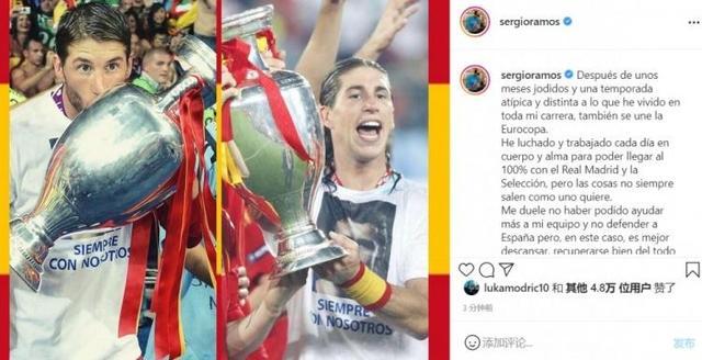 拉莫斯在社交媒体上表示:“经过几个月的时间,以及一个前所未有的赛季后,欧洲杯来了。我一直在努力,为了能够百分百地为皇马和国家队奋战,但很多事情不能如愿以偿。"