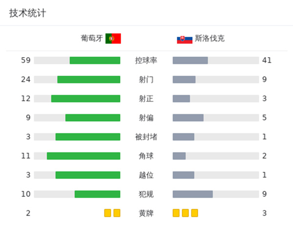 葡萄牙3-2斯洛伐克 C罗双响B费两助攻