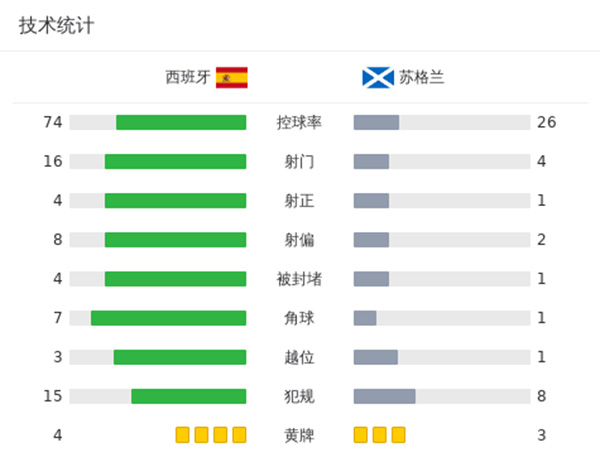 西班牙2-0苏格兰 小麦任意球破门被吹莫拉塔头球建功