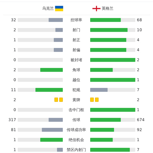 第26分钟,乌克兰反击机会,科诺普利亚右路倒三角传中,津琴科跟上包抄推射破门,乌克兰1-0领先英格兰。