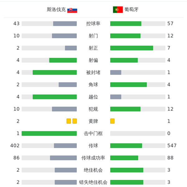 全场比赛结束,最终葡萄牙1-0斯洛伐克。