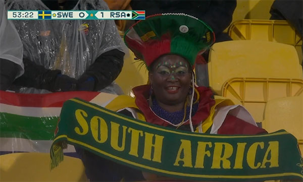 上半场双方均未取得进球,第16分钟,雷菲勒的一脚远距离吊球击中顶端球网。实力占优的瑞典队进攻火力十足,安格尔达尔在第19分钟射门被南非门将得到。塞奥波森韦起脚远射同样被门将没收。