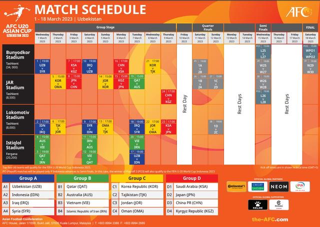 本届赛事共有16队参赛,中国U20国家队与日本队、沙特队以及吉尔吉斯斯坦队被分入D组,赛事前四名将晋级U20世界杯足球赛。此前,中国U20国家队曾相继屯兵阿联酋和克罗地亚进行海外拉练,其间经历8场热身赛,取得1胜3平4负的战绩。球员们通过实战练兵发现不足、补强短板,尽最大努力为大赛蓄力。