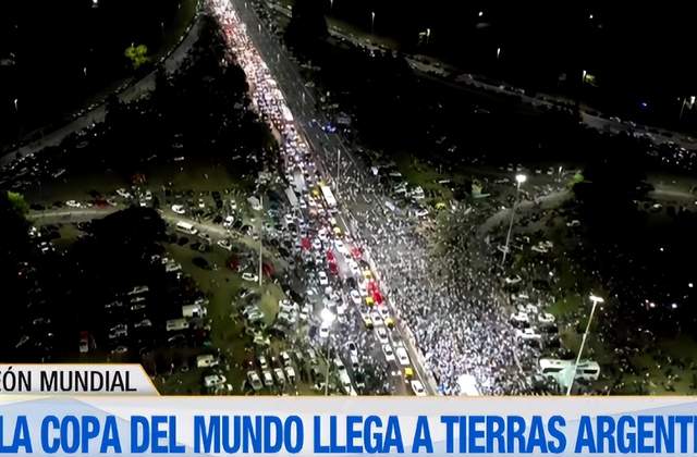 在阿根廷队的飞机到达机场时,机场外还有大批球迷正赶往机场。从一段视频可以看到,一眼望不到头的人,正在以步行的方式前往机场。而从高空的俯拍视频中可以看到,机场周围的道路早已经塞满了汽车和人群,交通已经完全堵塞和瘫痪。对于阿根廷来说,这是属于他们的欢庆时刻,未来几天,整个阿根廷都将沉浸在这无比巨大的欢乐之中。