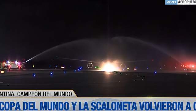 早在阿根廷的包机抵达前一天,机场方面就已经布置好红地毯。而在飞机降落之后,机场方面也派出了水车,让飞机从水龙中间驶过,以表示接风洗尘。而在飞机下,大批球迷也早已聚集,庆祝游行的敞篷大巴车也已经准备就绪。在飞机的尾翼上,梅西和迪玛利亚的画像赫然出现。