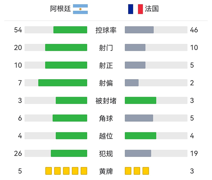第116分钟,姆巴佩外围搓射,蒙铁尔禁区内手球犯规,裁判判罚点球。姆巴佩主罚射门再次命中,阿根廷3-3法国!