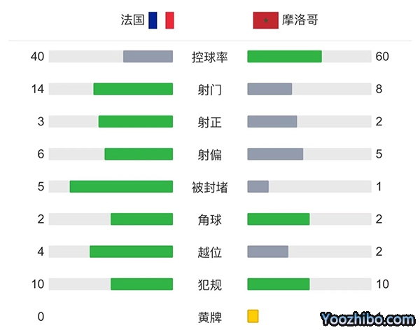 全场比赛结束,最终法国2-0战胜摩洛哥进军决赛。