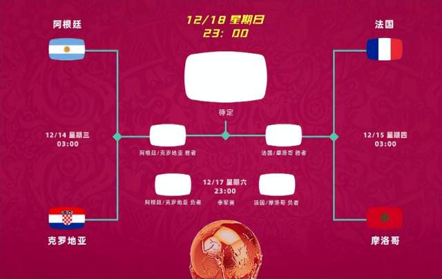 从半决赛对阵来看,法国击败摩洛哥应该不存在太大的问题,而阿根廷和克罗地亚的比赛,则悬念较大。2018年,克罗地亚也是在不被看好的情况下击败了英格兰,这一次他们能否提前终结梅西的加冕之旅呢?