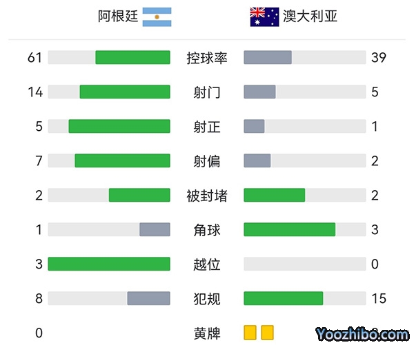 全场比赛结束,最终阿根廷2-1战胜澳大利亚晋级八强。