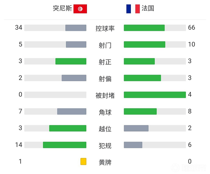 法国0-1突尼斯 哈兹里一条龙破门格子进球被吹