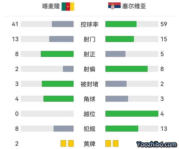 全场比赛结束,最终喀麦隆3-3战平塞尔维亚。