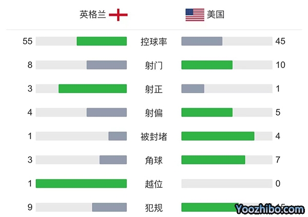 全场比赛结束,最终英格兰0-0闷平美国。
