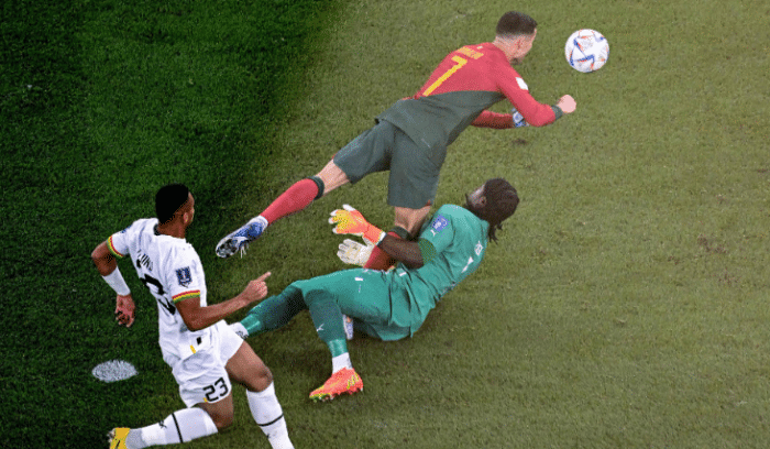 加纳队其实是有机会拿下分数的,虽然一度被葡萄牙队率先进球,但安德烈-阿尤板扳平比分,随后菲利克斯和莱奥在3分钟之内打进两球。1-3落后的情况下,加纳队没有放弃,他们依靠着布卡里进球扳回一城,在超长补时阶段,加纳队有希望在最后时刻绝平,甚至还惊出了已经下场的C罗一身冷汗。不过加纳队没有把握住机会,2-3输了球。