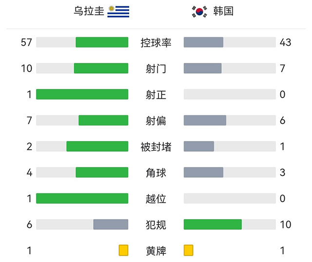 韩国0-0乌拉圭 双方全场0射正戈丁巴尔韦德中柱