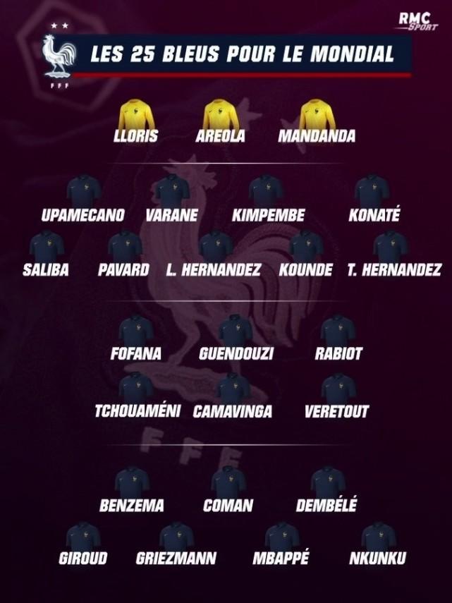 数说法国世界杯名单:25人总身价超10亿欧!法甲仅6将,11人参加上届