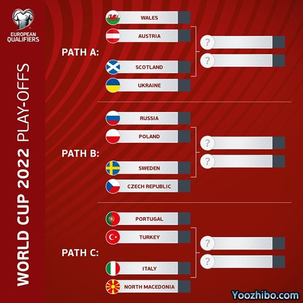 2022卡塔尔世界杯欧洲区预选赛附加赛对阵图