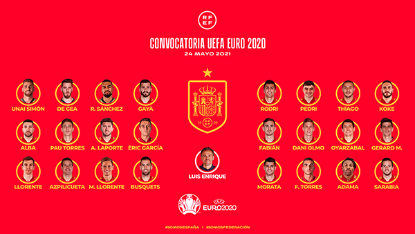 前锋:奥尔莫(莱比锡红牛)、奥亚萨瓦尔(皇家社会)、莫拉塔(尤文图斯)、杰拉德-莫雷诺(比利亚雷亚尔)、费兰-托雷斯(曼城)、特劳雷(狼队)、萨拉比亚(巴黎圣日耳曼)