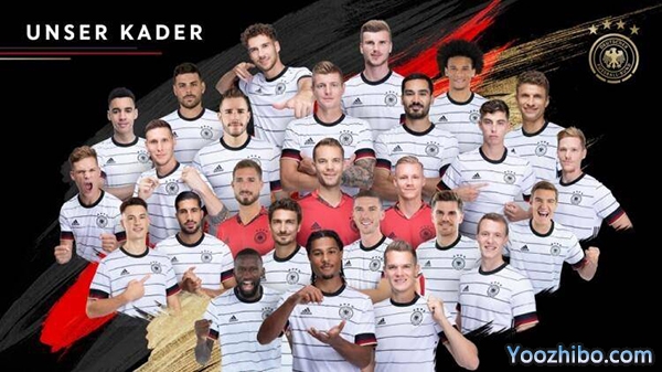 中场:京多安(曼城)、克罗斯(皇马)、埃姆雷-詹(多特)、基米希(拜仁)、托马斯-穆勒(拜仁)、穆西亚拉(拜仁)、格纳布里(拜仁)、格雷茨卡(拜仁)、哈弗茨(切尔西)、霍夫曼(门兴)、萨内(拜仁)、诺伊豪斯(门兴)