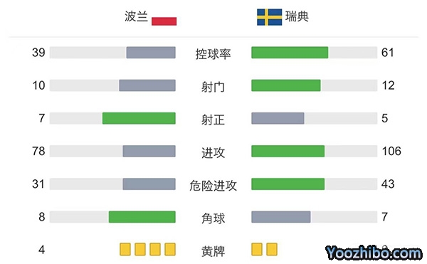 全场比赛结束,波兰2-0战胜瑞典。