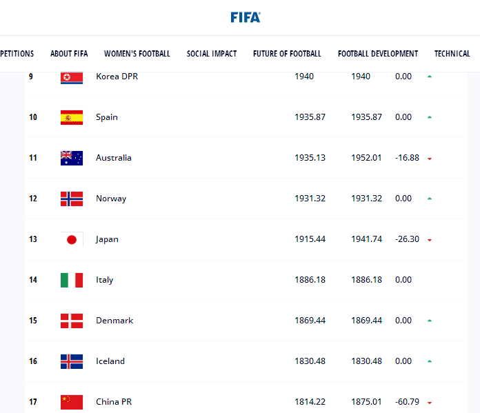 FIFA公布2021年度国家队排名:国足连续两年上升,女足排名第17!