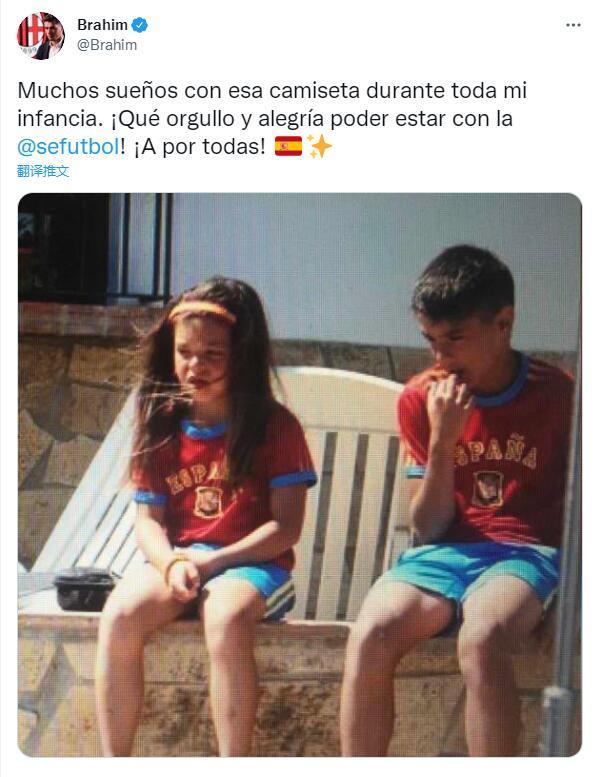 入选名单后,迪亚斯在社交媒体中晒出了一张自己小时候身穿西班牙国家队球衣的照片,配文写道:“小时候我总是梦到自己身穿这件球衣,现在能有机会穿上这件球衣并为国家队而战真的让我感到骄傲和幸福。加油!”