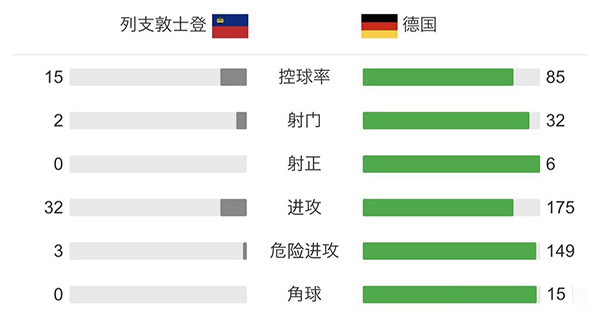 24直播网讯:北京时间9月3日2:45,世预赛欧洲区J组的一场较量,德国在瑞士圣加仑的康步公园球场,对阵列支敦士登。上半场,穆夏拉助攻维尔纳破门,列支敦士登暂时0-1德国;下半场,格雷茨卡主助攻萨内破门。最终,德国客场2-0轻取列支敦士登。