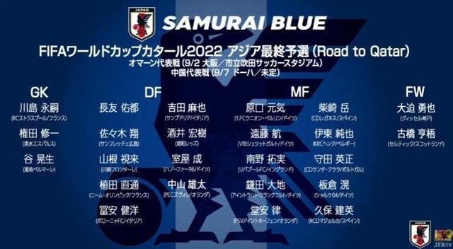 24直播网讯 今日,日本公布世预赛大名单:久保建英、南野拓实领衔。9月7日日本将对阵中国男足。