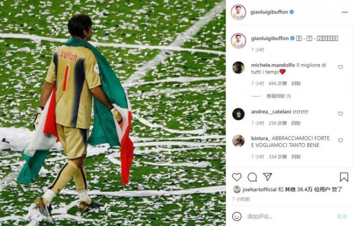 北京时间7月12日凌晨3点,意大利和英格兰将在欧洲杯决赛中相遇,比赛将在温布利体育场举行。在社交媒体上,布冯贴出了自己在2006年赢得冠军后身穿意大利国旗的照片,并写道:“2006年7月9日”。值得一提的是,乔哈特赞扬