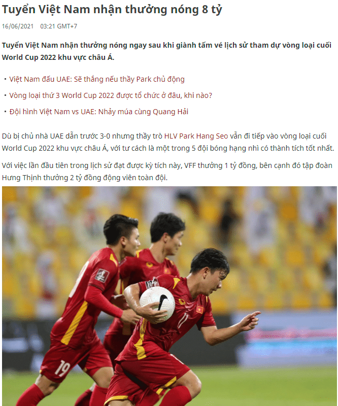 来源:24直播网06-16 15:3324直播网讯今天凌晨,越南在40强赛中2-3不敌阿联酋,但仍闯入12强赛,越南国家队也因此获得了80亿越南盾的累计奖金。