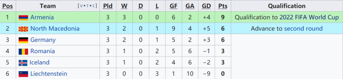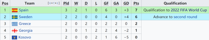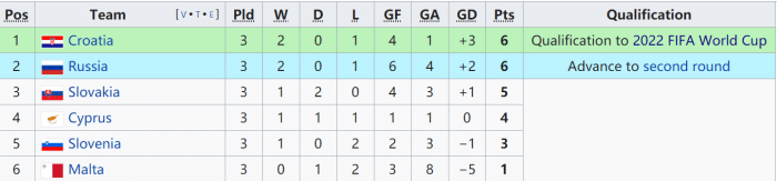 根据规定,当小组赛全部踢完之后,每个小组的头名球队将直接晋级世界杯决赛圈,第二名球队则将参加附加赛。