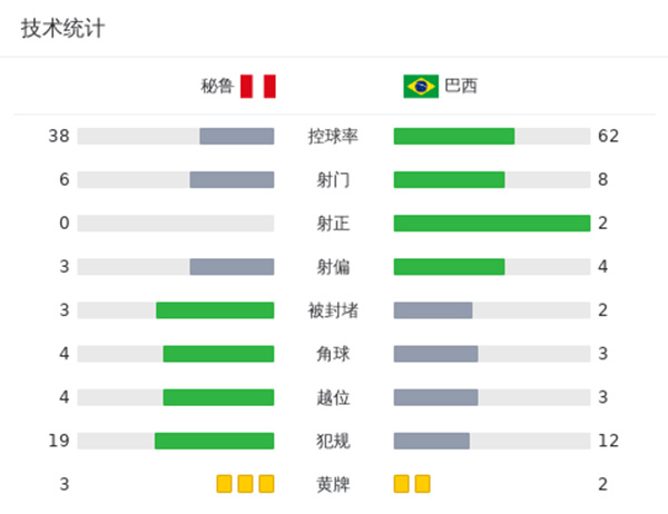 巴西首发:23-埃德森、2-达尼洛(86' 13-万德松)、3-马尔基尼奥斯、4-加布里埃尔、6-洛迪、5-卡塞米罗、8-吉马良斯(86' 18-乔林顿)、10-内马尔(90+3' )、7-拉菲尼亚(86' 22-马丁内利)、11-罗德里戈、9-理查利森(64' 19-热苏斯)