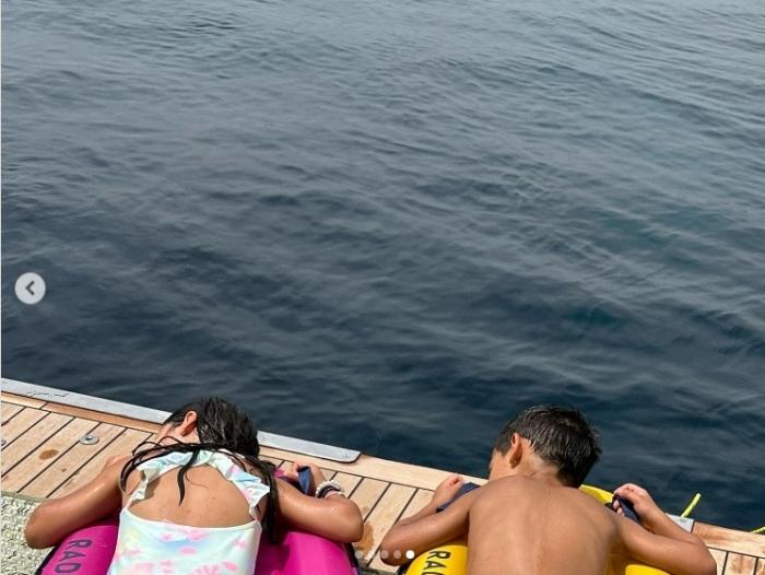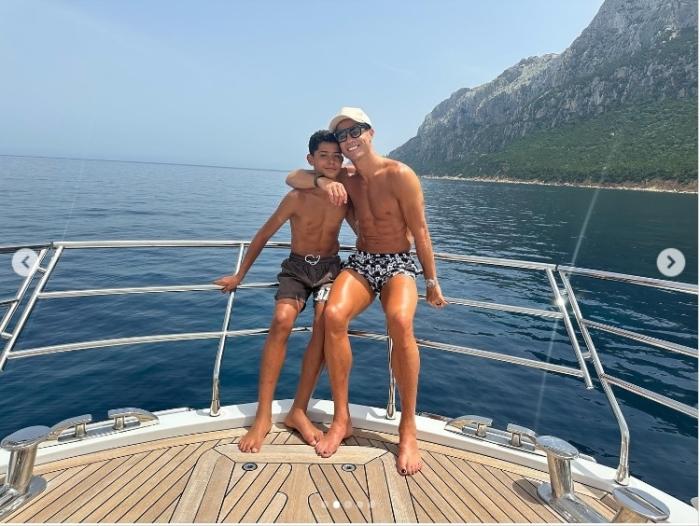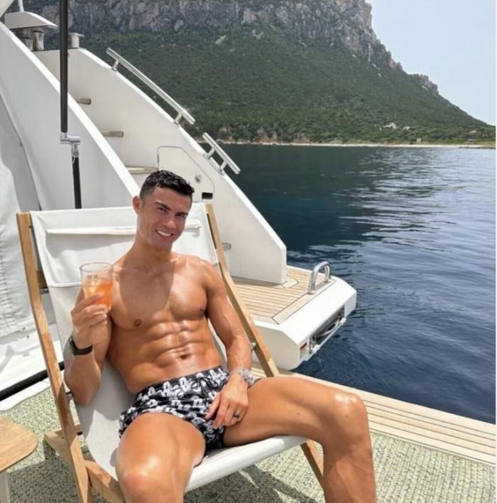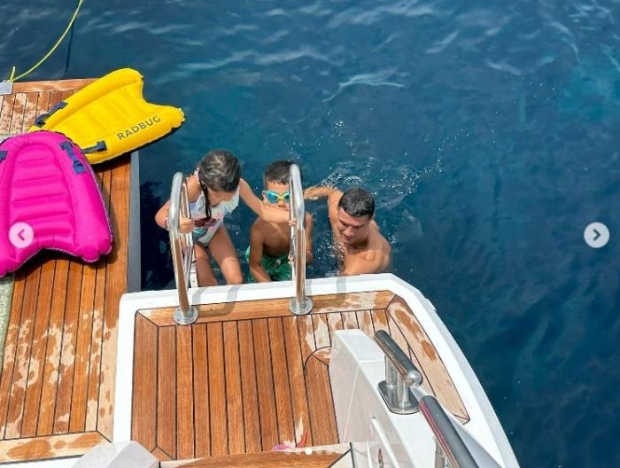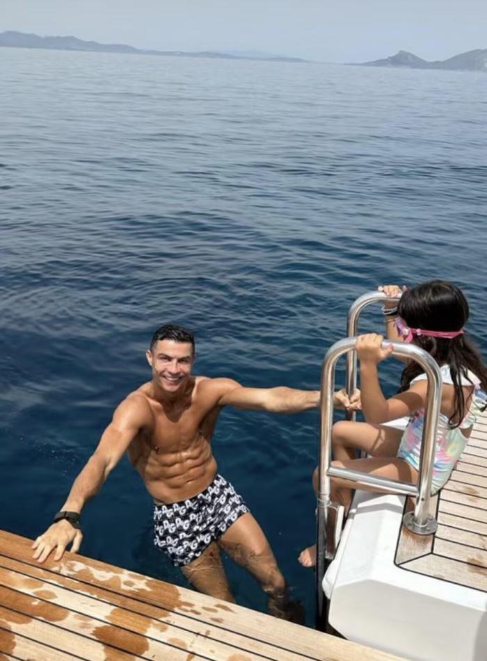 C罗一家乘豪华游艇度假!总裁赤膊大秀8块腹肌,潇洒表演跳水绝技