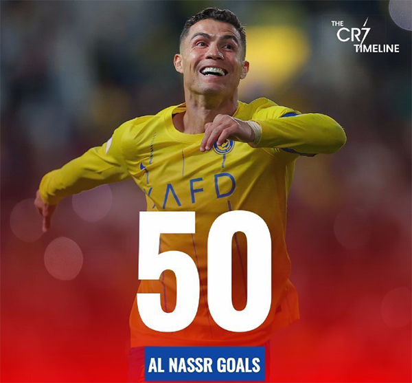 第2,这是C罗加盟利雅得胜利打进的第50粒进球,而他只加盟了1年的时间便达成了50球里程碑。