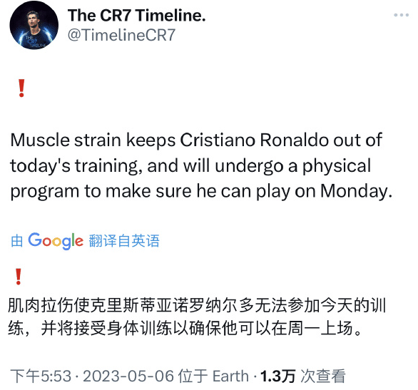 11天3赛!38岁C罗扛不住,肌肉疲劳缺席训练,沙特金靴悬了