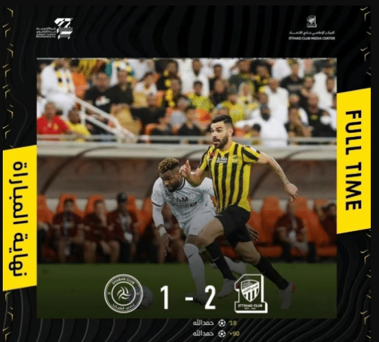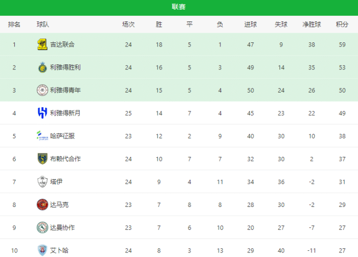 本轮利雅得胜利0-2不敌利雅得新月,吃到败仗,吉达联合对阵利雅得青年队,第一名和第三名的强强对决,最终吉达联合2-1取得胜利,前广州城外援哈默德点球首开纪录,利雅得青年的瓜安卡点球扳平比分。到了第89分钟,利雅得青年的布彭扎主罚点球踢丢了,伤停补时阶段,哈默德点球梅开二度,最终让吉达联合在超长补时下有惊无险的取得胜利。