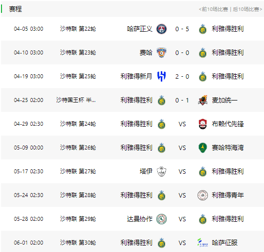 利雅得胜利接下来的赛程一览:
