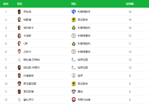 射手榜层面,伊哈洛依靠着对阵利雅得胜利的点球梅开二度,已经甩开塔利斯卡和哈默德,以18球的数据独自领跑射手榜。C罗很遗憾,他最近两场比赛都没有能够取得进球,目前依旧是11球的状态,在联赛还剩下6场的情况下,想要超越势头强劲的伊哈洛,难度还是很大的。