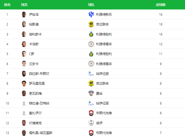 射手榜层面的竞争还是很激烈的,三大前中超外援伊哈洛、哈默德和塔利斯卡都是16球排名第一,卡洛斯12球位居第四,C罗11球排名第五。C罗依旧有机会逆袭,但前提是延续本轮之前的良好状态。