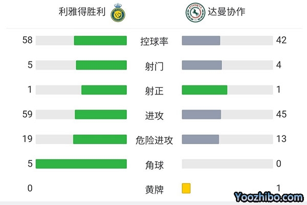 全场比赛结束,最终利雅得胜利1-0达曼伊蒂法克。
