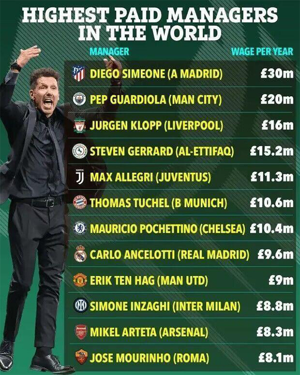 而这场堪称耻辱的平局之后,达曼协作最近9场比赛,取得了0胜5平4负的战绩,期间只打进了3球。带队取得如此糟糕的表现,43岁的英格兰传奇杰拉德,执教能力再度引发了广泛的质疑。要知道杰拉德在沙特拿着1520万英镑的年薪,在世界主帅年薪中仅次于西蒙尼、瓜迪奥拉、克洛普,位列第4位。可以说,他的带队表现完全配不上自己的高薪。