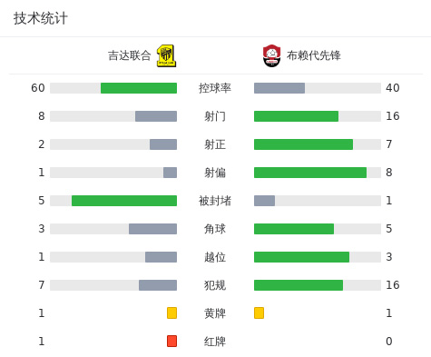 第22分钟,布赖代先锋左路发起传中,禁区中央的卡里姆无人盯防,轻松将球顶进,吉达联合0-1布赖代先锋↓