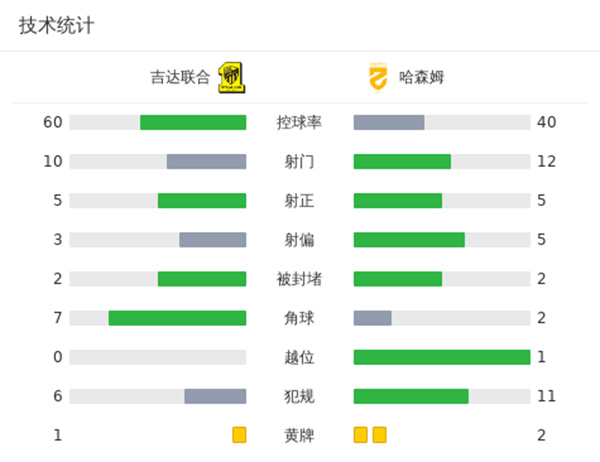 吉达联合首发:34-格罗赫、5-路易斯-费利佩、15-卡德什、4-奥马尔-豪萨维(45'90罗马里尼奥)、28-巴沙特(88'33-奥拉扬)、13-山凯蒂、7-坎特、6-法尔汉(65'16-哈姆迪)、10-科罗纳多、70-卡马拉(65'99-哈姆达拉)、9-本泽马