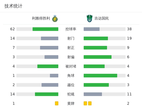 上半场补时第6分钟,胡拉吉头球解围失误,塔利斯卡禁区右侧兜射,皮球击中横梁下檐反弹入网,利雅得胜利3-1吉达国民!